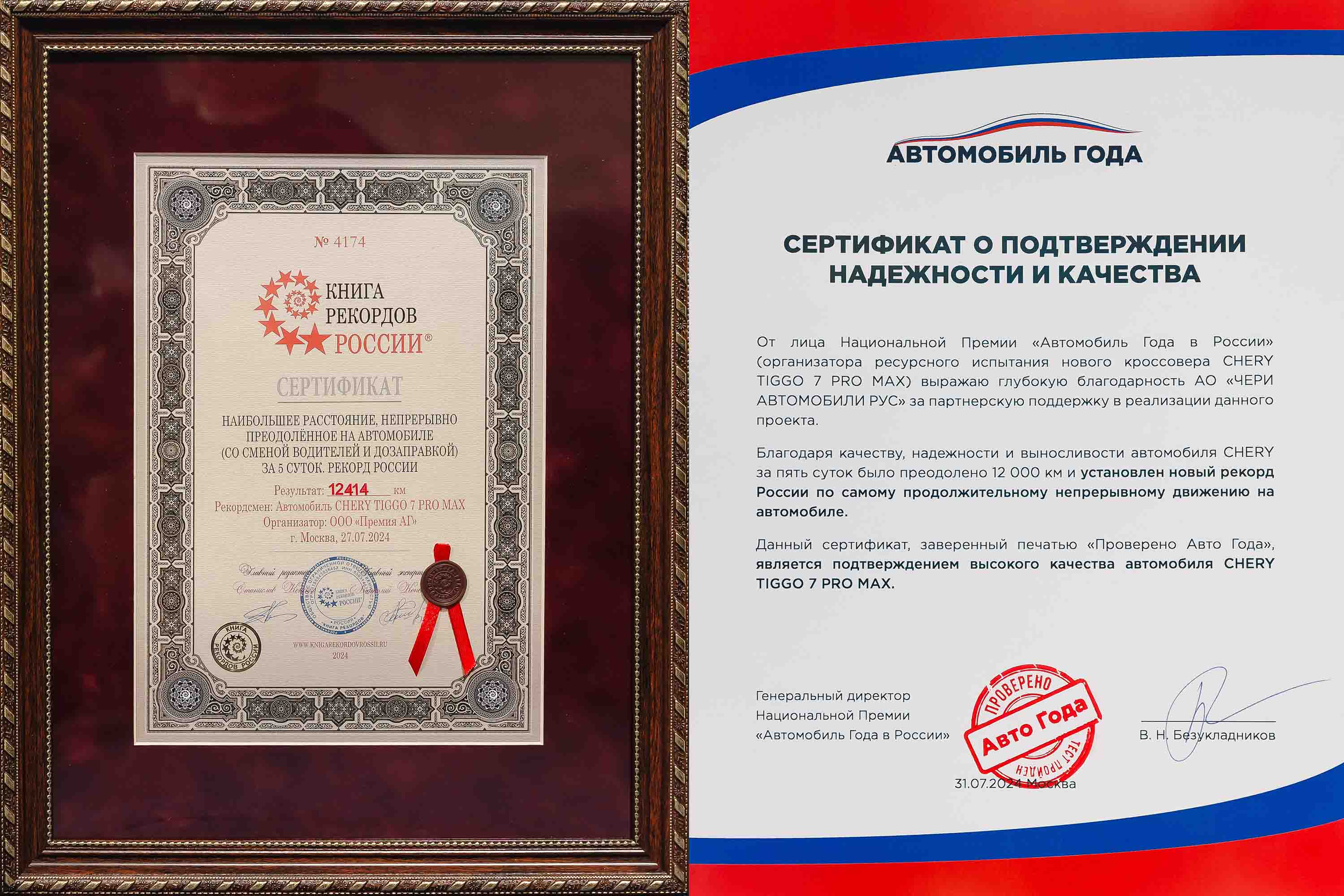 «Команда «Авто Года» подвергла TIGGO 7 PRO MAX сложному испытанию и хоть мы и уверены в автомобиле, но всё равно переживали. Как никак это публичное испытание, которое проходило на дорогах общественного пользования и банальный прокол колеса мог привести к срыву проекта. Успешное завершение испытаний в очередной раз доказывает правильный выбор этого SUV C-класса более 124 000 семей на сегодняшний день. И теперь техническая надежность TIGGO 7 PRO MAX доказана и подкреплена сертификатами Книги рекордов России и «Проверено Авто Года», - прокомментировал директор бренда CHERY Дмитрий Максимов.